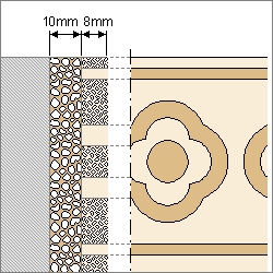Préparation de la surface support. Calepinage des pans. Préparation et application d'une première couche. Préparation et application d'une seconde couche. Réalisation des joints. Poncifs à l'aide de pochoirs. Sgraffite. Révisions et nettoyage final.