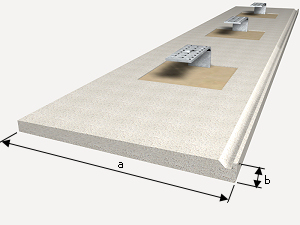 Appui de fenêtre de béton polymère à surface polie, plat, avec larmier, de 145x25 mm, avec ancrage métallique en acier inoxydable et grave adhérée à la surface sur sa face inférieure, fourni en pièces jusqu'à 2 m de longueur.