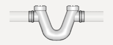 Siphon en ligne en PVC, couleur tuile, démontable, avec assemblage mâle/femelle, de 110 mm de diamètre, mis en place entre le collecteur de sortie et l'arrivée.
