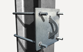 Dispositif d'ancrage en acier galvanisé, constitué de plaque d'ancrage, deux boulons en U carrés, rondelles et écrous en acier, amortissable en 3 utilisations, pour la fixation au support métallique.