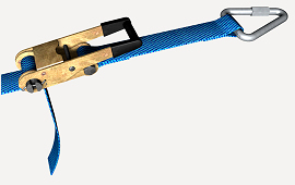 Sangle en polyester de 35 mm de largeur et 10 m de longueur, avec tendeur avec mécanisme à blocage anti-retour et mousqueton aux deux extrémités, amortissable en 3 utilisations.