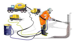 Béton à projeter, BCN: CPJ-CEM II/A 32,5 - TP - B 30 - 15/25 - E: 2a - BA - P 18-305, avec un dosage en ciment de 400 kg/m³, prêt à l'emploi, selon NF EN 14487-1.