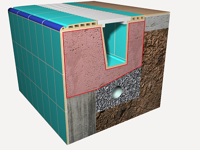 UNITÉ D'OUVRAGE ABL050: PORTE-À-FAUX EN BÉTON ARMÉ POUR BORD DE PISCINE À DÉBORDEMENT.