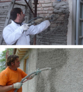 FOT030 Revêtement thermique et acoustique avec du mortier léger de chaux et de granulés en liège, sur parement intérieur