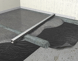 Implantation et marquage des niveaux. Préparation des joints périphériques de dilatation. Réalisation des guides. Coulage et extension du mortier. Réglage du mortier. Séchage du mortier.