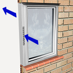 Implantation. Montage. Mise en place et fixation de l'entrée d'air au-dessus de la menuiserie.
