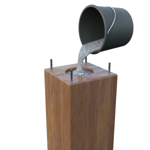 Poteau préfabriqué en béton armé, de 30x30 cm et section creuse, de 200 cm de hauteur, avec 4 barres d'acier de 12 mm de diamètre, finition imitation bois, avec une couche de lasure. Comprend béton BCN: CPJ-CEM II/A 32,5 - TP - B 25 - 15/25 - E: 2a - BA - P 18-305 pour remplissage du poteau.